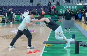 新绝招?吴骁赛前热身在篮下练习单手投篮